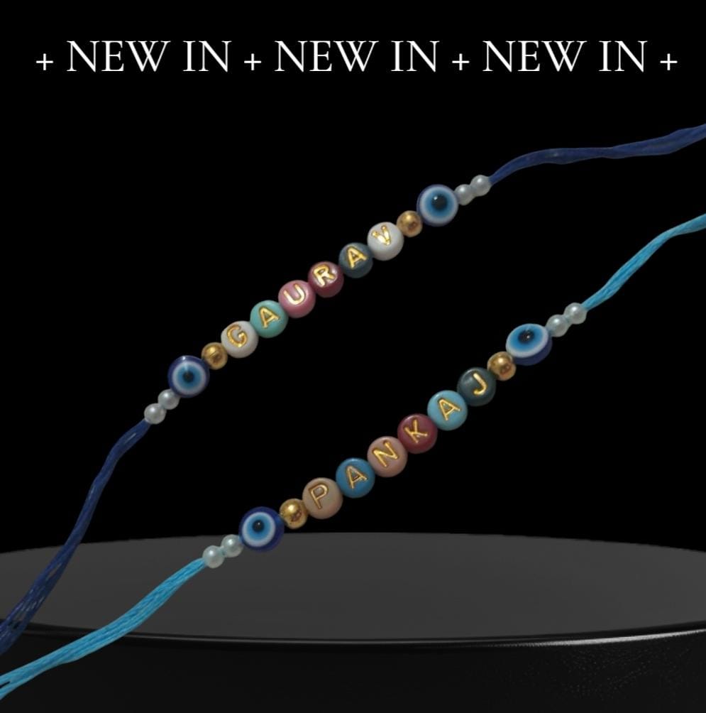 Customized Beads Rakhi with Name & Evil Eye Charm – Personalized Raksha Bandhan
