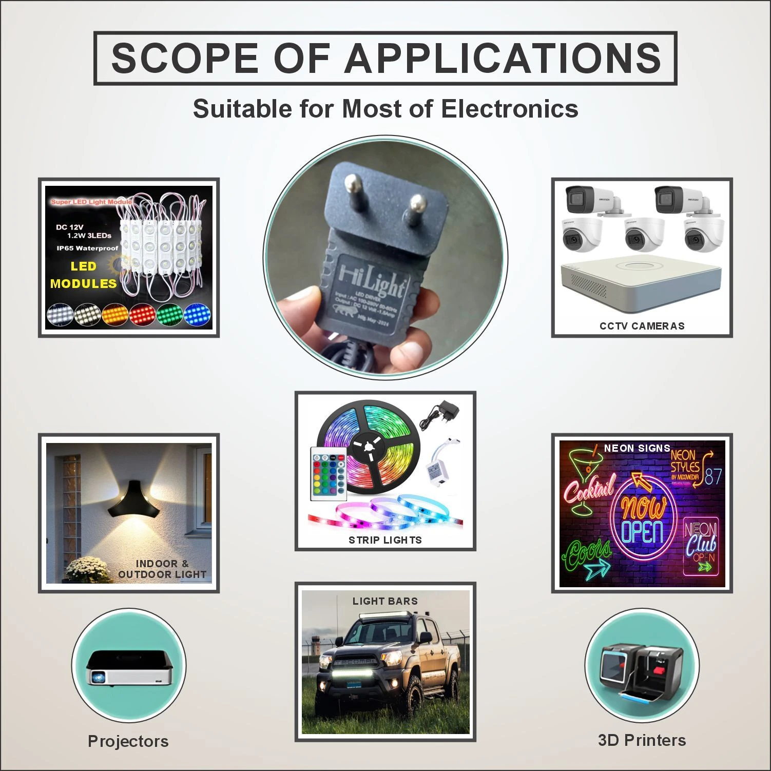 • Versatile Compatibility: Ideal for powering LED strips, CCTV cameras, wireless devices, and other electronic gadgets.
